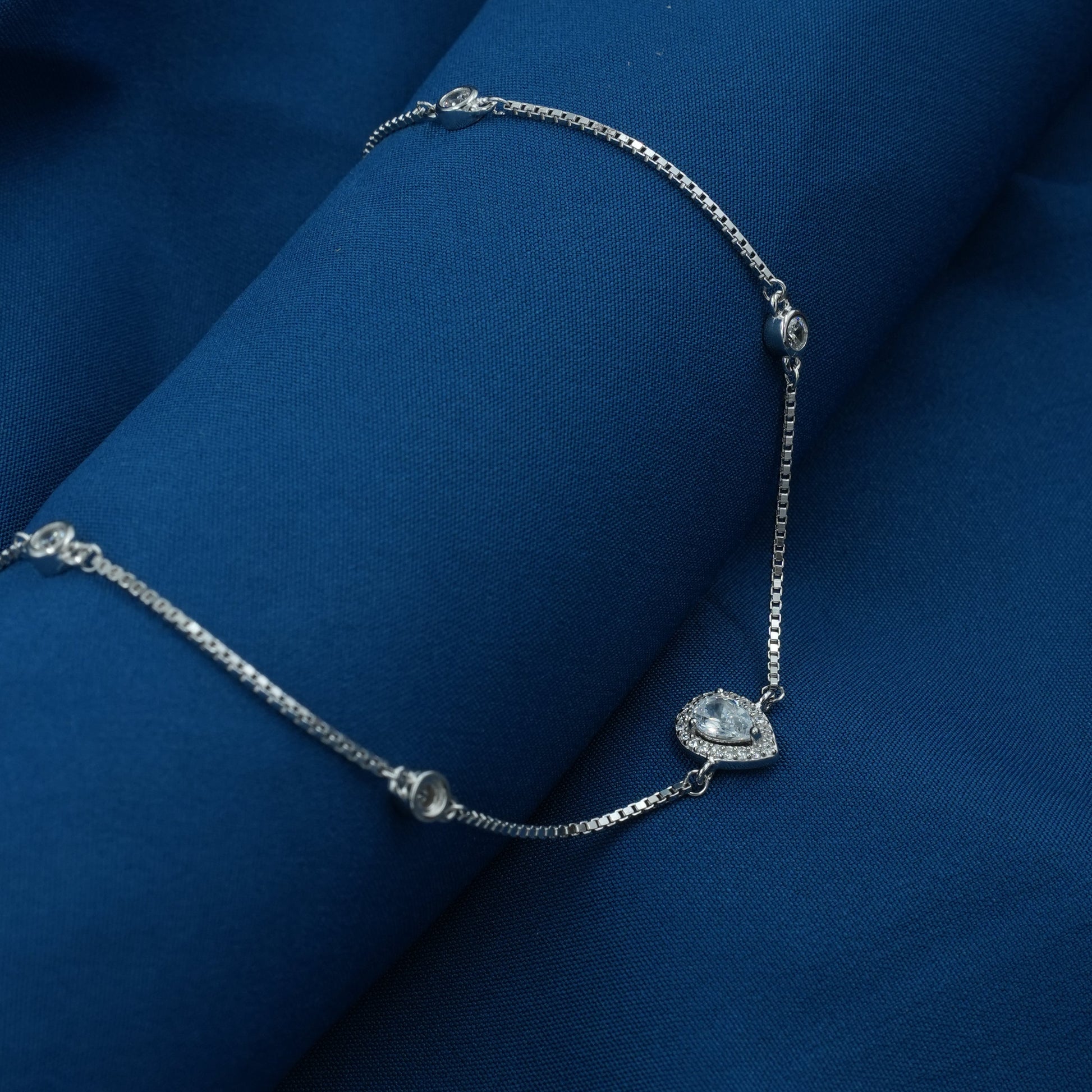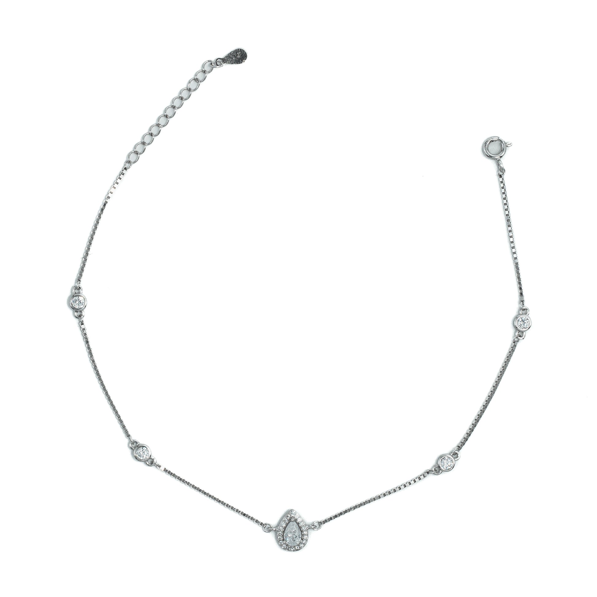 Crafted in sterling silver, the Luna Drop Anklet features a refined drop charm suspended from a delicate chain. Its clean silhouette and subtle movement create an effortlessly graceful look, perfect for everyday wear and understated evenings.